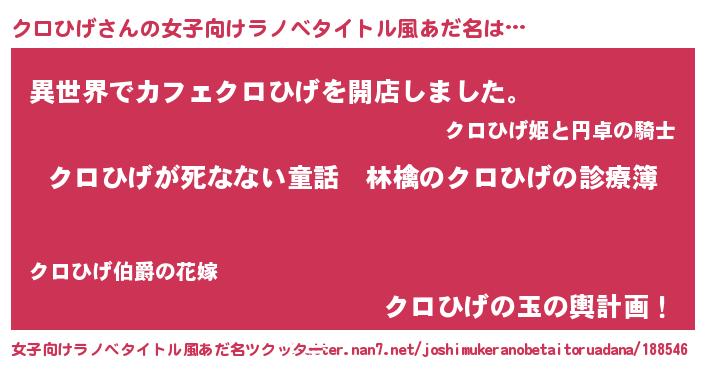 | ヘコむあだ名 | 『クロひげ(震え声)』『クロにゅー』 |