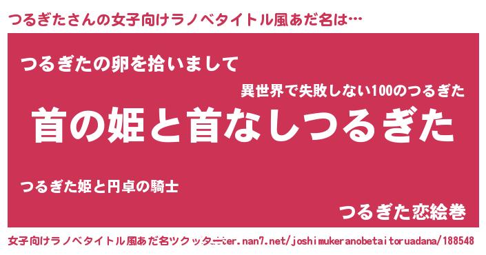 | 胡散臭い通販商品みたいなあだ名 | 『信頼と実績のサプリメント…その名も「つるぎた」』 |