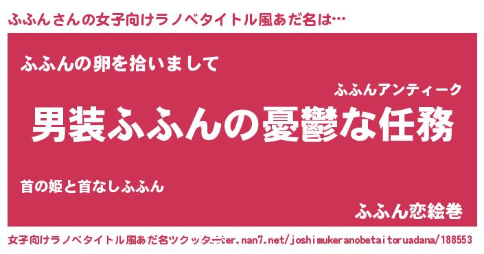 | 男性向けラノベタイトル風あだ名 | 『冴えないふふんの育てかた』 |