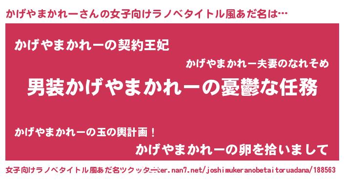 | 胡散臭い通販商品みたいなあだ名 | 『来世でも幸せになれる水素水…その名も「かげやまかれー」』 |