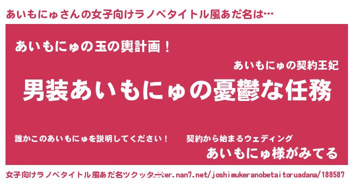 | ヘコむあだ名 | 『あいっぺ』『あいもにゅ(笑)』 |