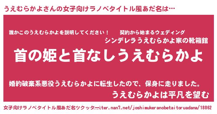 | 胡散臭い通販商品みたいなあだ名 | 『必ず成功する水晶球…その名も「うえむらかよ」』 |