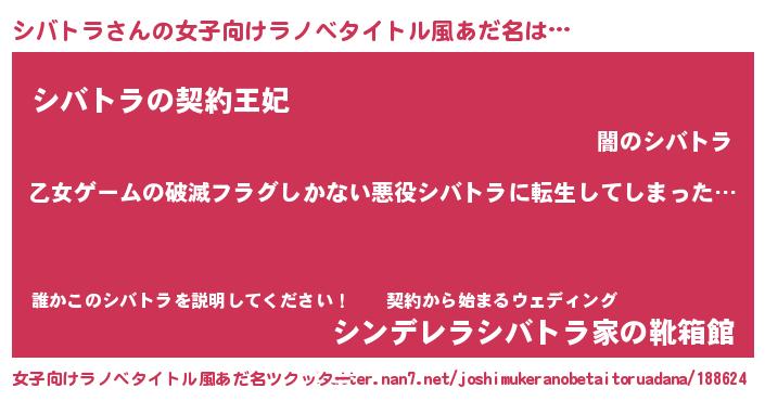 | ファンタジー風あだ名 | 『ヴァルシバーナ』『シバディッシュ』 |