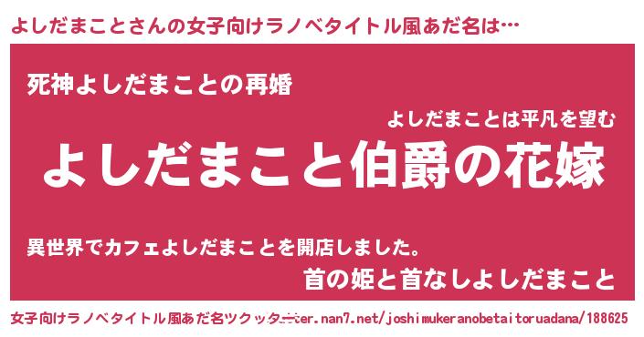 | 男性向けラノベタイトル風あだ名 | 『やはりよしだまことの青春ラブコメはまちがっている 』 |