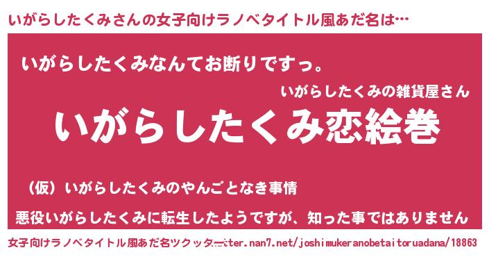 | 意味不明あだ名 | 『眠気覚ましガムいがらしたくみ味』 |
