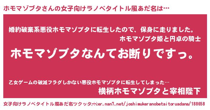 | 男性向けラノベタイトル風あだ名 | 『魔法科高校のホモマゾブタ』 |