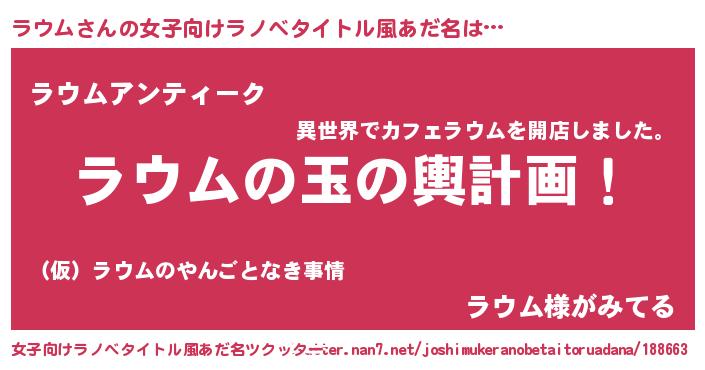 | 意味不明あだ名 | 『ヨモギ科ラウム属』『自称ラウム』 |