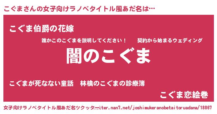 意味不明あだ名 | 『自称こぐま』『こぐまフォーエバー』 |