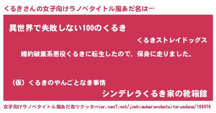 | 胡散臭い通販商品みたいなあだ名 | 『絶対に幸福をもたらす健康食品…その名も「くるき」』 |