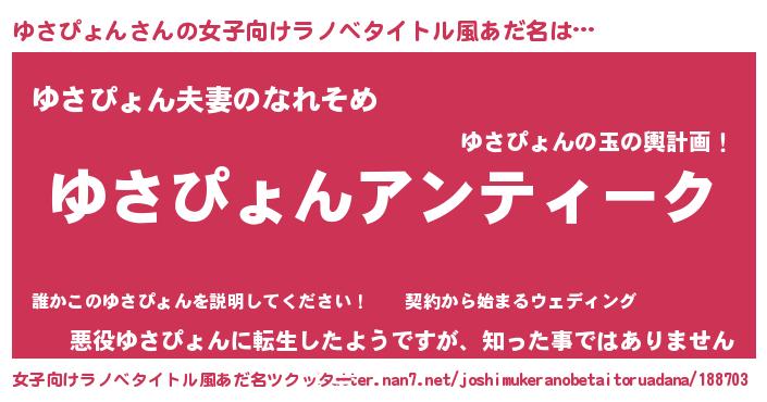 | 男性向けラノベタイトル風あだ名 | 『魔法科高校のゆさぴょん』 |