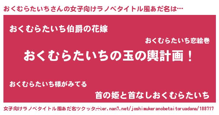 | 胡散臭い通販商品みたいなあだ名 | 『運命の人と巡り会える高級そうな壺…その名も「おくむらたいち」』 |
