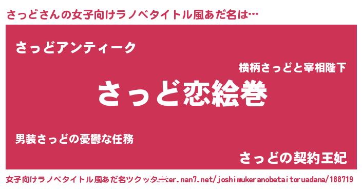 | ヘコむあだ名 | 『さっど(笑)』『さっにゅー』 |