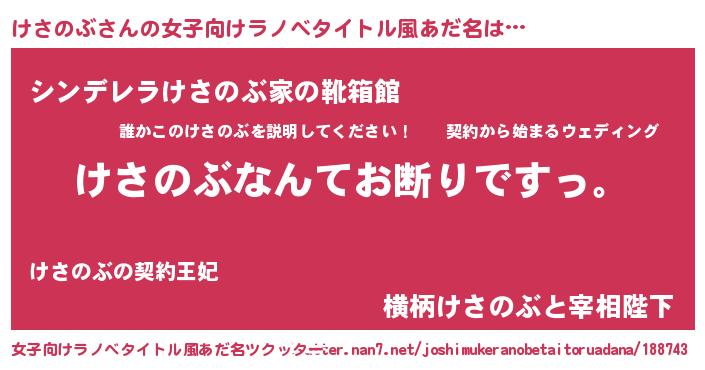 | 男性向けラノベタイトル風あだ名 | 『魔法科高校のけさのぶ』 |