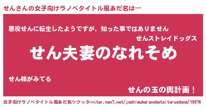 | 男性向けラノベタイトル風あだ名 | 『おまえをオタクにしてやるから、俺をせんにしてくれ! 』 |