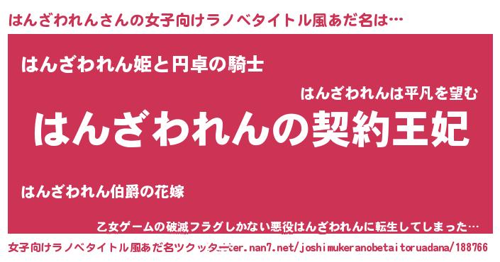 | 胡散臭い通販商品みたいなあだ名 | 『来世でも幸せになれる健康食品…その名も「はんざわれん」』 |