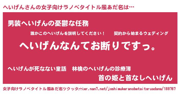 | 意味不明あだ名 | 『自称へいげん』『ペロリンへいげん』 |