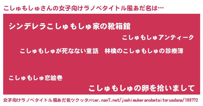 | 料理風あだ名 | 『こしゅもしゅのカルパッチョ風』 |
