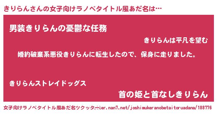 | 男性向けラノベタイトル風あだ名 | 『転生したらきりらんだった件』 |