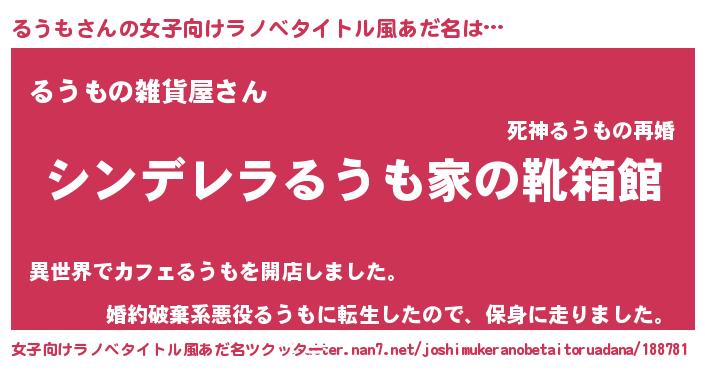 | ヒーロー風カッコイイあだ名 | 『ウルトラるうもマン』『ネオルウモ』 |