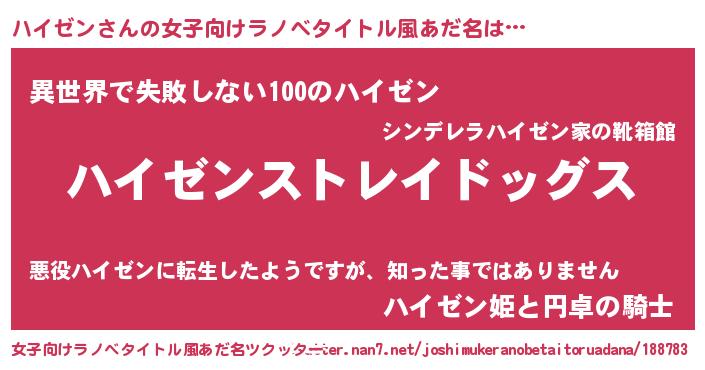 | ヘコむあだ名 | 『ハイゼン(笑)』『ハイにゅー』 |