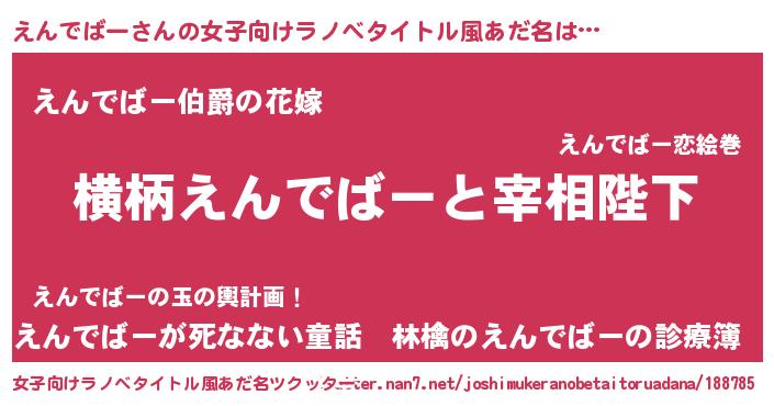 | 男性向けラノベタイトル風あだ名 | 『えんでばーに滅ぼされるだけの簡単なお仕事です』 |