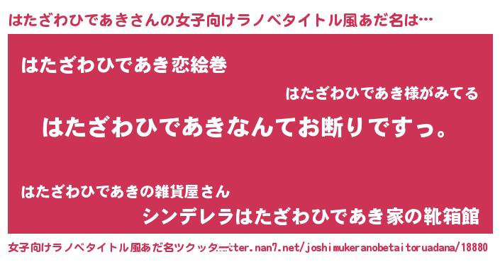 | 男性向けラノベタイトル風あだ名 | 『魔法科高校のはたざわひであき』 |