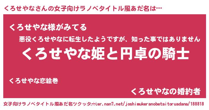 | 胡散臭い通販商品みたいなあだ名 | 『モテモテ間違いなしブレスレット…その名も「くろせやな」』 |