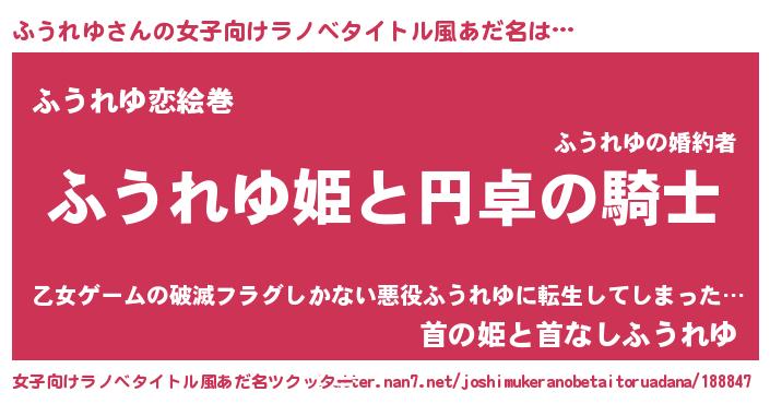 | 男性向けラノベタイトル風あだ名 | 『ふうれゆの憂鬱』 |