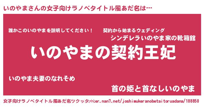 | 男性向けラノベタイトル風あだ名 | 『いのやまという概念が存在しない退屈な世界 』 |