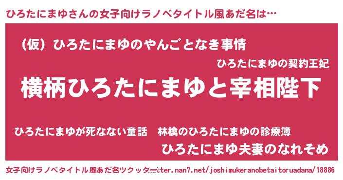 | 男性向けラノベタイトル風あだ名 | 『ひろたにまゆに滅ぼされるだけの簡単なお仕事です』 |