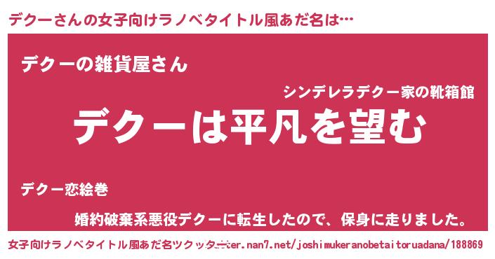 | 意味不明あだ名 | 『とにかく怪しいデクー』『自称デクー』 |