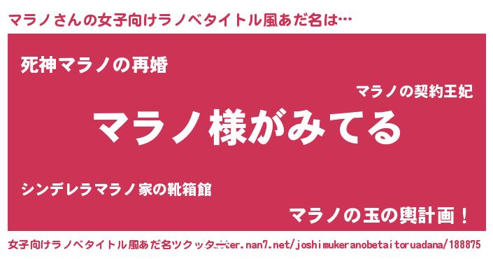 | 意味不明あだ名 | 『とにかく怪しいマラノ』 |