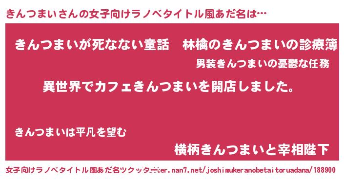 | 男性向けラノベタイトル風あだ名 | 『誰もが恐れるあのきんつまいが、ぼくの専属メイドになるようです。』 |