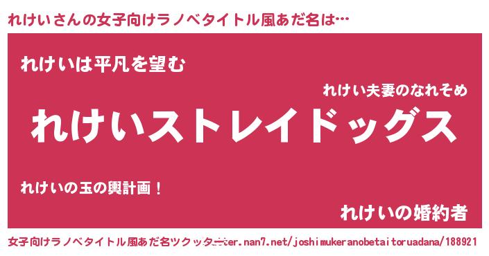 | 欧米人風あだ名 | 『ケンブリッジれけい』『ウサインれけい』 |