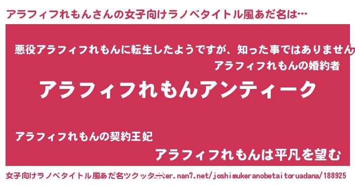 | 意味不明あだ名 | 『自称アラフィフれもん』 |