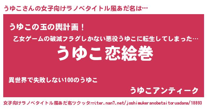 | ヘコむあだ名 | 『うゆこ(笑)』『なまこ酢』『うゆを』 |