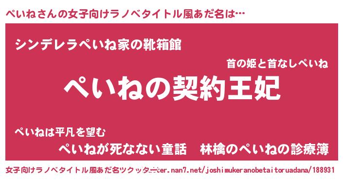 | 意味不明あだ名 | 『永久保存ぺいね』『ペロリンぺいね』 |