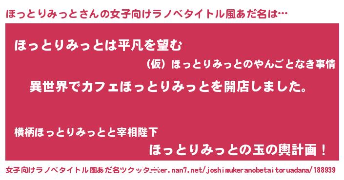 | 意味不明あだ名 | 『永久保存ほっとりみっと』 |