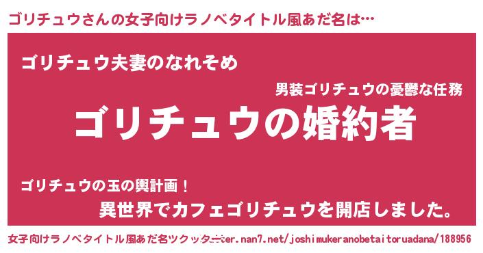 | ヒーロー風カッコイイあだ名 | 『ウルトラゴリチュウマン』 |