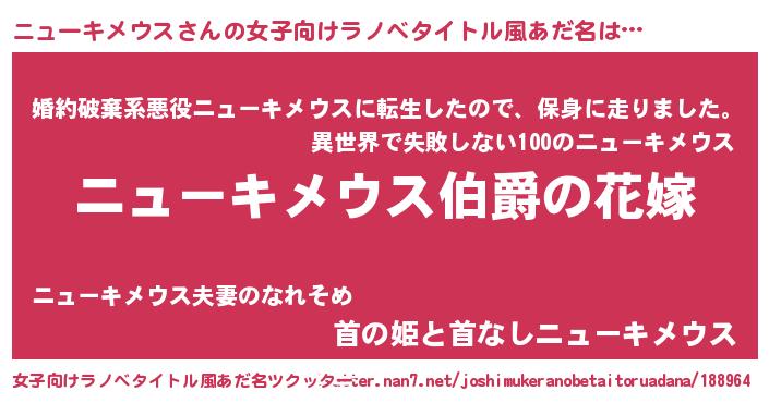 | ファンタジー風あだ名 | 『エターナルニューキメウスー』 |