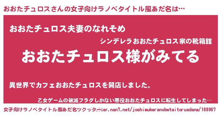 | 男性向けラノベタイトル風あだ名 | 『おおたチュロスの嫁は女の子じゃないと思った?』 |