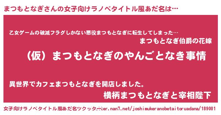| 男性向けラノベタイトル風あだ名 | 『まつもとなぎの憂鬱』 |