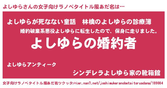 | ヘコむあだ名 | 『酢こんぶ』『よしゆら(苦笑)』 |