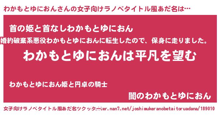 | 男性向けラノベタイトル風あだ名 | 『ダンジョンにわかもとゆにおんを求めるのは間違っているだろうか』 |