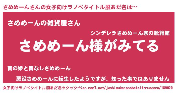 | 意味不明あだ名 | 『とにかく怪しいさめめーん』 |