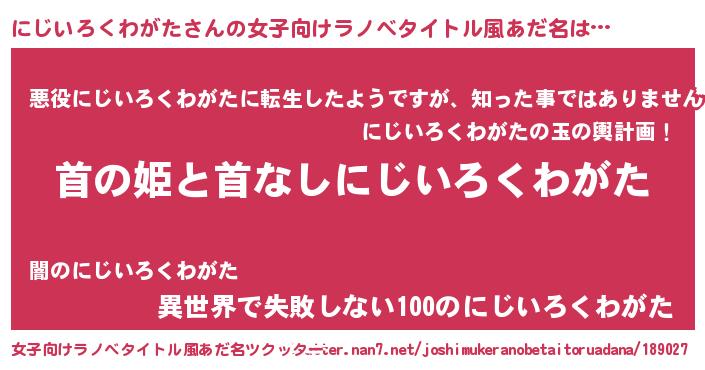 | ファンタジー風あだ名 | 『ヴァルニジーナ』『ニジディッシュ』 |