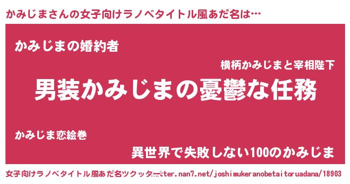 | 男性向けラノベタイトル風あだ名 | 『うちのかみじまが世界を掌握している!』 |