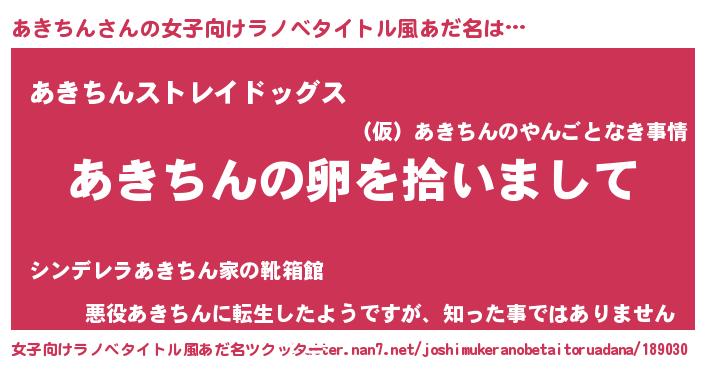 | 男性向けラノベタイトル風あだ名 | 『ダンジョンにあきちんを求めるのは間違っているだろうか』 |