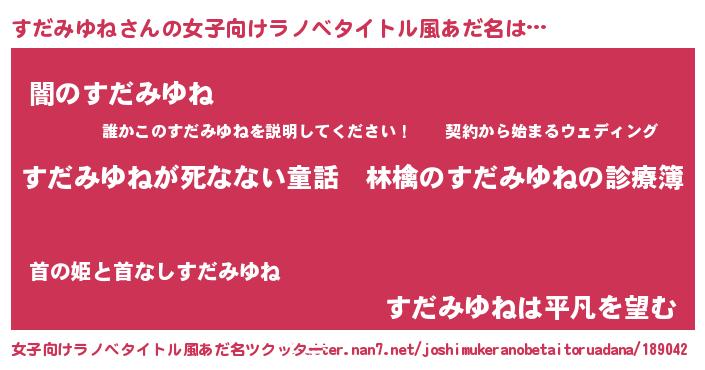 | 胡散臭い通販商品みたいなあだ名 | 『ハリウッド女優が絶賛した100年もののヴィンテージワイン…その名も「すだみゆね」』 |