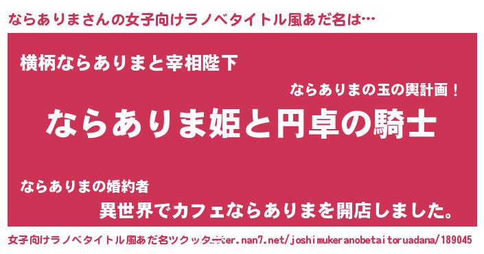 | 男性向けラノベタイトル風あだ名 | 『ならありまの憂鬱』 |